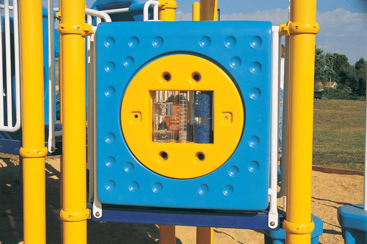 Kids can rotate the circle in the center of this panel to experience gravity create thrilling bubbles and rattles.