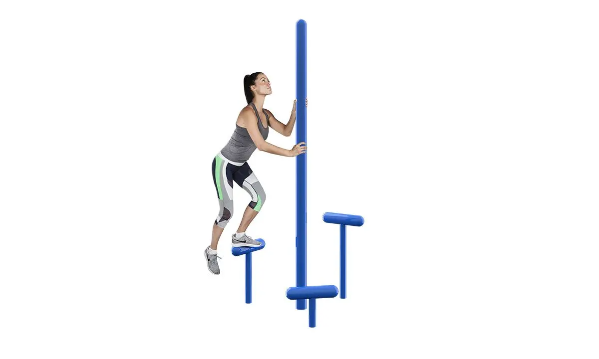 Three heights; three levels of challenge. Step Up gets users working their legs as they step onto the elevated bar, using the center pole for balance and support.