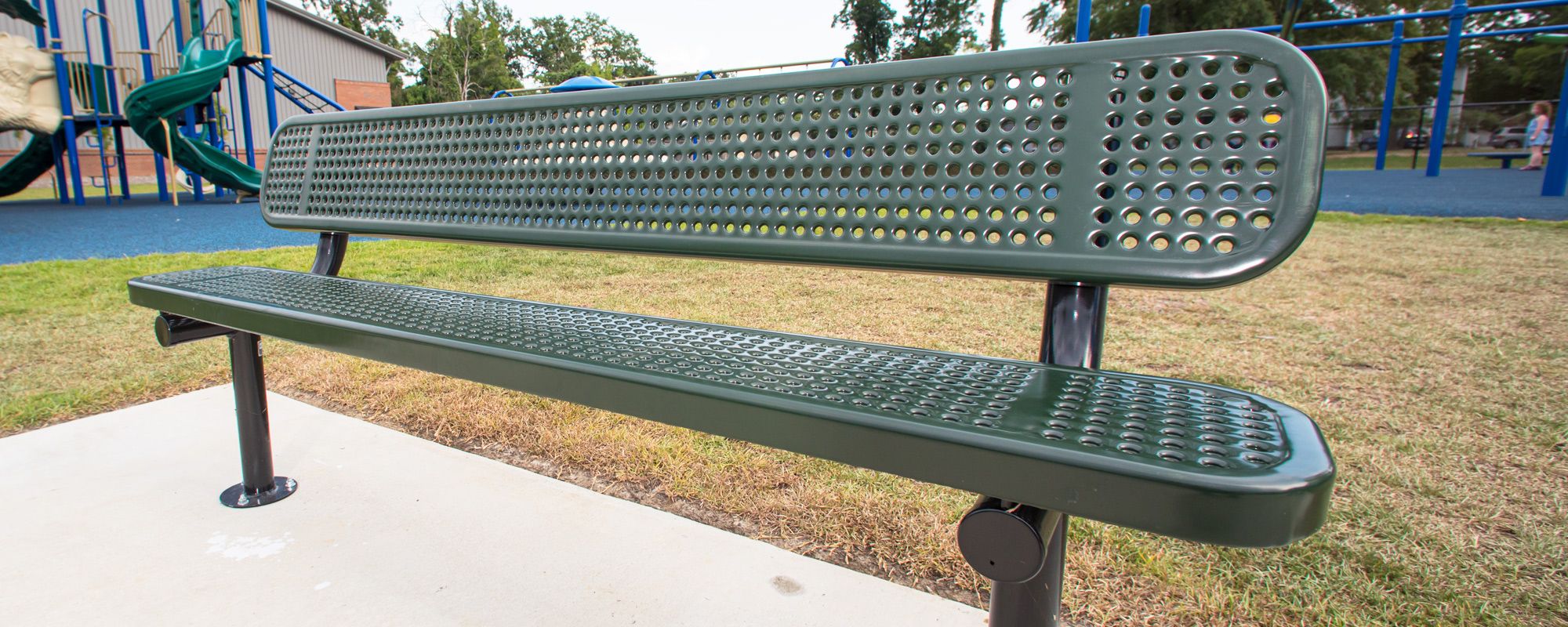 - Playground Park Benches: A playground bench is another amenity that exudes comfort, warmth and a sense of community. When visitors know they have a place to sit, relax and watch their kids play or use the facilities, they’re more likely to come back.